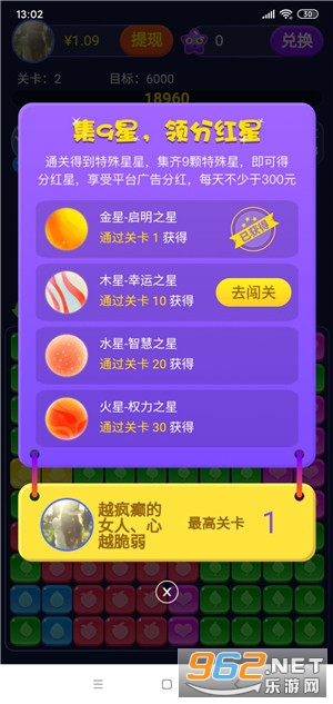 2、通关得到特殊星星,集齐9颗特殊星,即可得分红星,享受平台广告分红,每天不少于300元