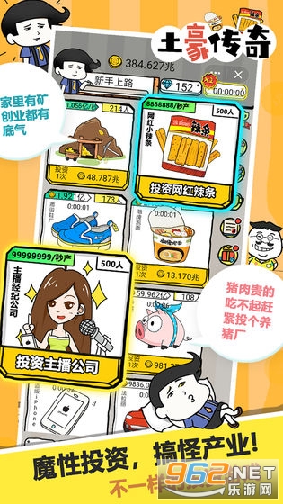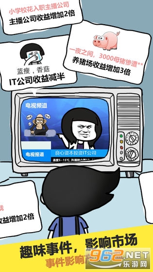 一款非常好玩的经营类手游,通过玩游戏的方式来赚钱零花钱,从白手起家慢慢的继承两万亿的财产,非常好玩有趣,感兴趣就来962试试吧!