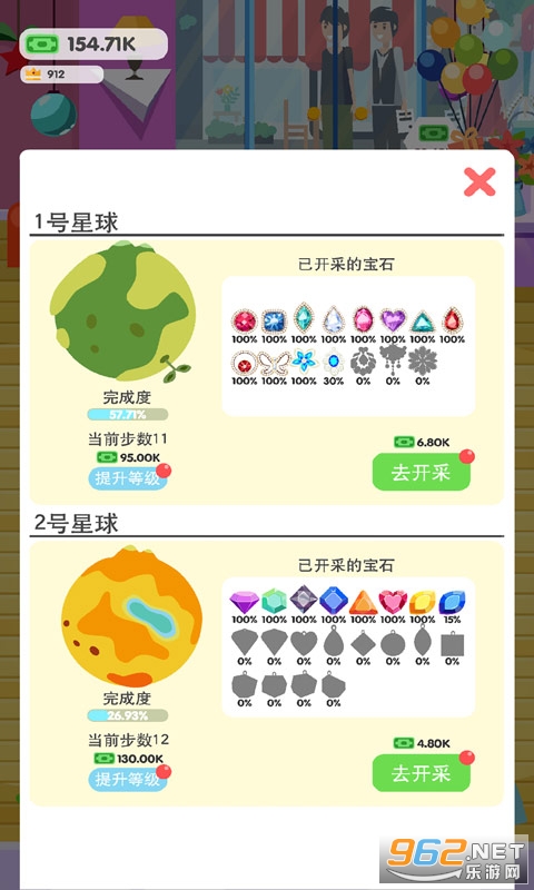 可以去挖掘探索多个宝石星球,还可以升级探索技能。