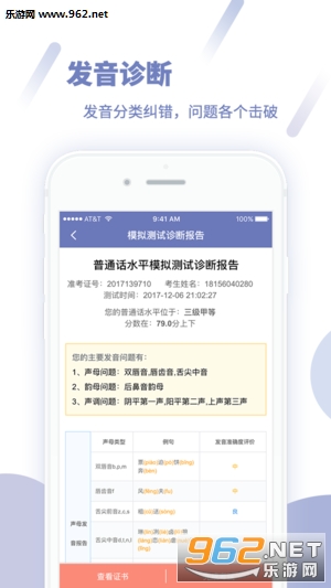 3.还可以获得系统为您提供的测试诊断报告,轻松了解自己的普通话发音水平。