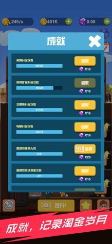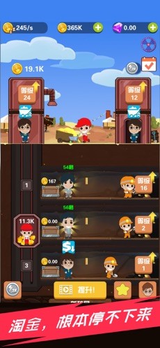 《淘金日记游戏红包版》是一款可爱的挖矿赚钱游戏,游戏中玩家是一名小小的矿主,一开始你的产能很低,你的矿工也很少,你要使用金币去雇佣更多的工人来帮助你挖矿,并且去购买更先进的设备,提高你们的效率,你挖的矿越多,能赚到的钱就越多。