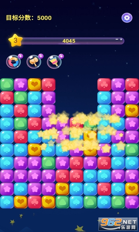1、游戏中玩家只需要点击相同颜色的星星就能将它们消除,消除的星星越多得分越高