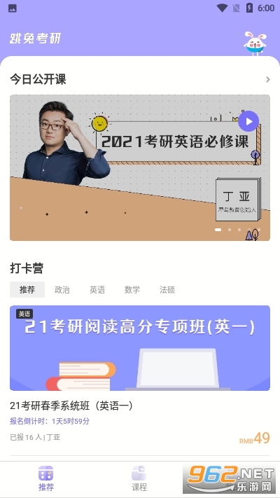 《跳兔考呗考研神器》是一款专为考研的朋友们准备的学习助手,针对你的弱项,来快速补习,提高你的短板,课程设置遵循教研体系,让你深度了解各种类型的题目,需要的来下载吧。