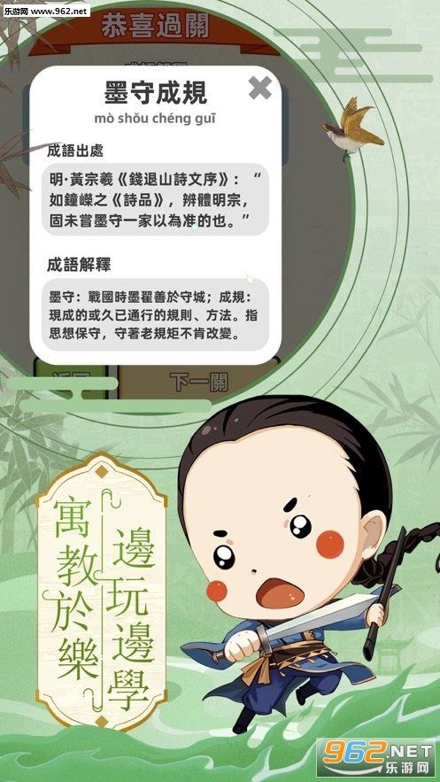 2、通关后可查看成语解释和典故,玩游戏的同时提高文学素养;