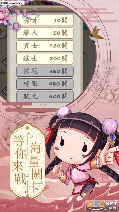 1、玩家一开始只是一个童生,没有什么排面,只有不断的进行答题才能升官进爵;