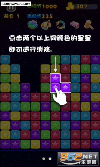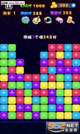 聚集越多的同色星星一次消除分数越高