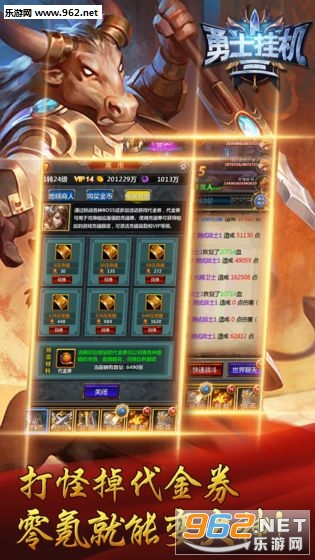 《勇士挂机红包版》是一款非常给力的魔幻题材挂机赚钱游戏,简单的游戏玩法,轻松的游戏体验,不但非常适合打发无聊的时间,还有超值福利等你领取,感兴趣的朋友欢迎来962下载吧!