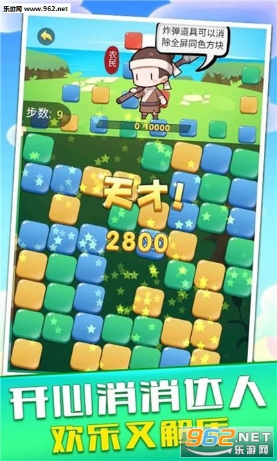 4.只需轻轻点击,即可消除相邻的同色方块。闯关发财,趣味道具妙趣横生。一起点点点,欢乐消消消。步数加成,升级更轻松,玩起来更轻松更爽快。一起来成为最强的消除达人吧。