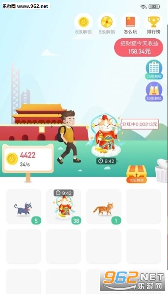 3、不断升级达到38级后,可以合成永久的招财猫,体验惊喜红包,轻松赚零花钱。