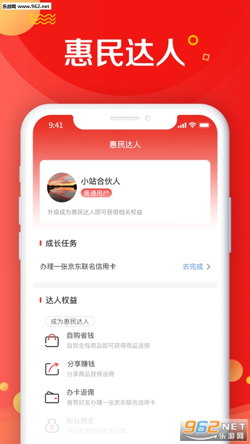 达人认证任务简单,成为达人后只需要通过京东惠民小站app分享京东商品给朋友,产生订单即可轻松赚取佣金。