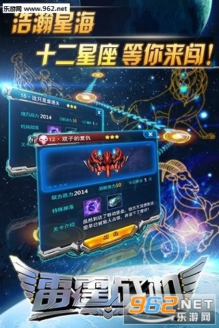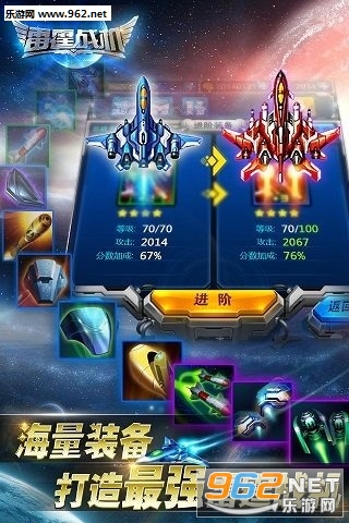 雷霆战机安卓版是国内首款星际空战手游,数十种装备,上千种搭配,DIY属于您的专属战机。无尽挑战模式让您与好友一起比拼,彰显你的实力。通过装备强化合成打造属于你的无敌战机。主宰十二星座小伙伴们一起翱翔宇宙,激战太空吧!