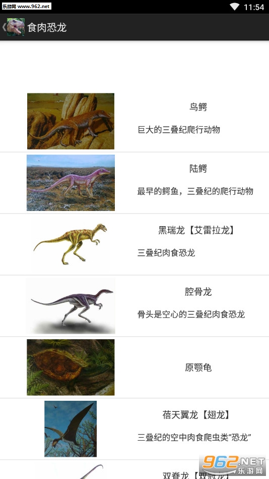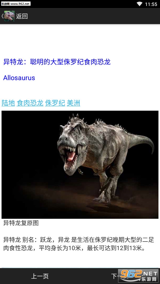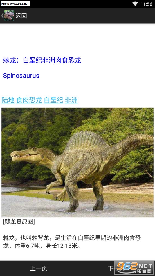 非常不错的恐龙图片和资料软件,软件收集中众多不同的恐龙,可以了解这些恐龙生活的年代地区和习性,了解恐龙大小等,软件还有着猜恐龙小游戏,喜欢的朋友可以下载试试。