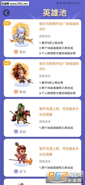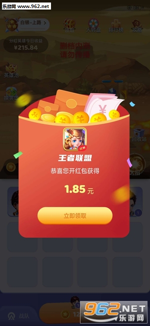 王者联盟是超炫酷的合成游戏,每日登陆玩游戏,都有机会获得限时分红英雄,和众多玩家一起分红平台的广告收益,更有机会获得永久分红英雄哦。画面炫酷玩法更有趣,现金奖励可立即提现,提现秒到账。