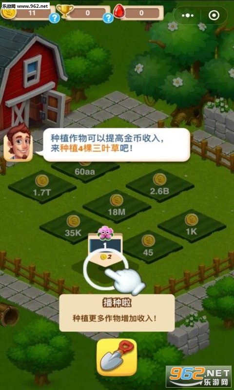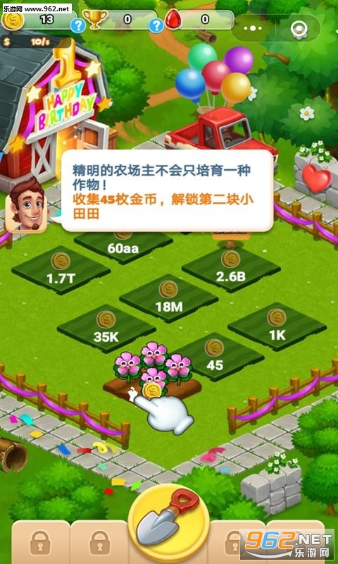 1、从种田男主到农田大亨,解锁更多的植物,获得更多的奖励,升级自己的农田;