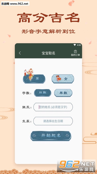 起名取名大全软件不仅深刻剖析了传统的五行八字,还结合易经命理,三才五格,以及古文诗词曲赋的文采,严谨的算法和专业易学国学大师的深厚知识沉淀,是各位宝爸和宝妈的优选。