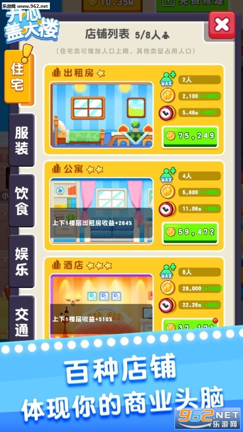 《开心盖大楼红包版》是一款模拟建造类的游戏,玩家进入游戏需要不断的完成发布的任务,完成任务后即可获得海量奖励!化身包工头,打造最快的施工队,完成系统发布的任务获得红包奖励,整体游戏玩法超多,还可以使用过关金币,招募更多高效率的员工,一起来体验下吧,非常好玩!