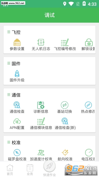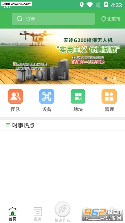 包括以下功能模块:订单业务、团队管理、地块管理、无人机通信、新闻热点、在线商城等。具有订单发布、任务分配、团队组建、添加作业、航线规划、地块生成、植保作业、航拍作业、无人机通信、远程控制、远程监控、无人机固件升级、无人机在线配置等等功能。