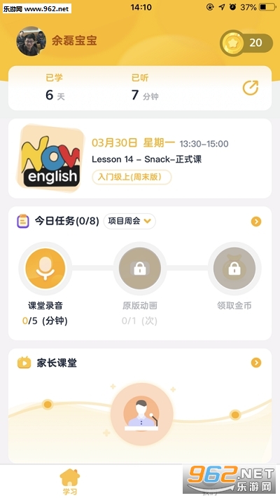 一款学习教育软件,好课程双师app专为双师加盟机构的学员和家长研发的家校闭环产品。供学生在课后完成“一听课堂录音、二看原版动画、三课堂闯关打卡”的任务