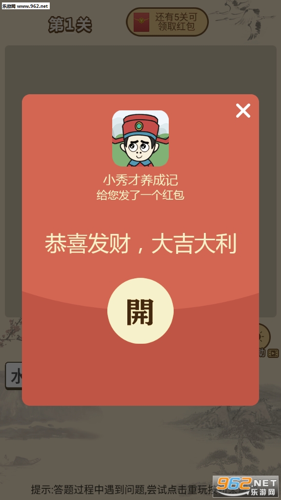 一款手机赚钱app,简单的赚钱模式,每天登陆平台玩成语游戏即可,不但可以学习成语知识,还能赚点钱,喜欢的小伙伴快来962下载吧!