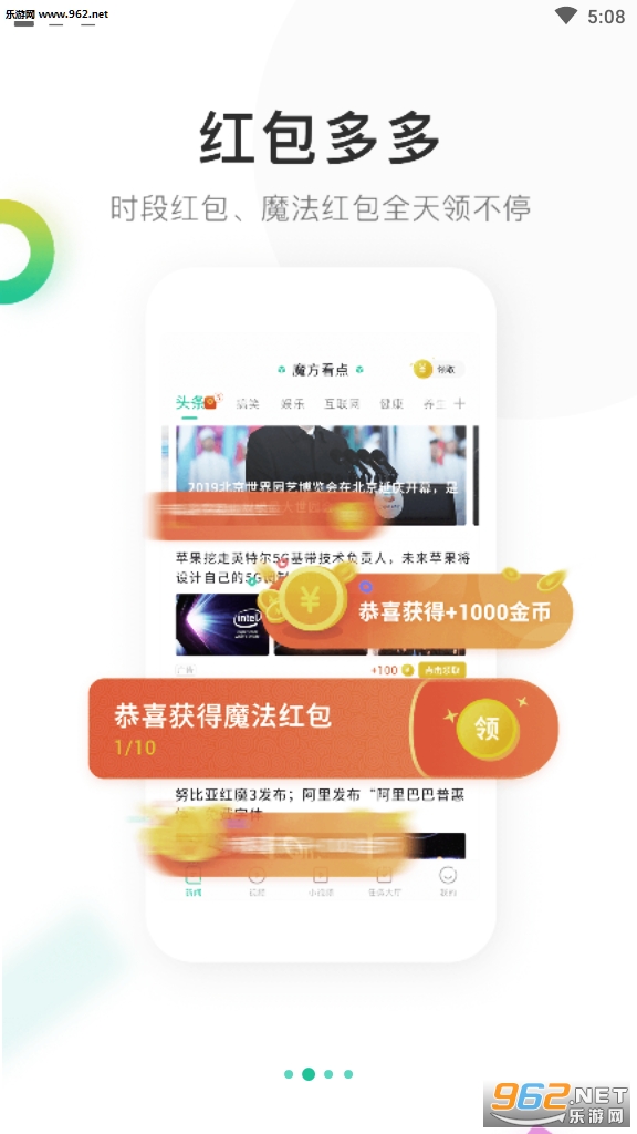 完美的掌上阅读赚钱软件,海量的新闻资讯和视频资源等你来看,享受一边娱乐一边赚钱的快乐体验,提现快,收益高,感兴趣快来962下载吧!