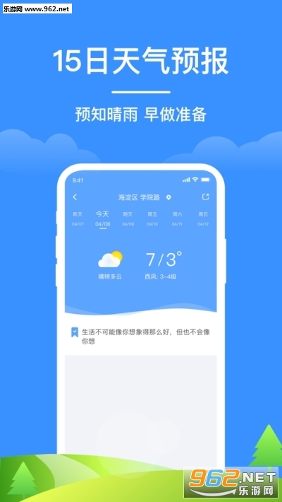 《如意天气赚钱app》给大家带来了一款非常实用的天气查询工具,大家可以在这里看到精准的天气预报,每日签到打卡还可以获得红包奖励喔。让大家能通过如意天气app开启红包轻松提现到!下面就是小编为大家带来的软件下载地址!