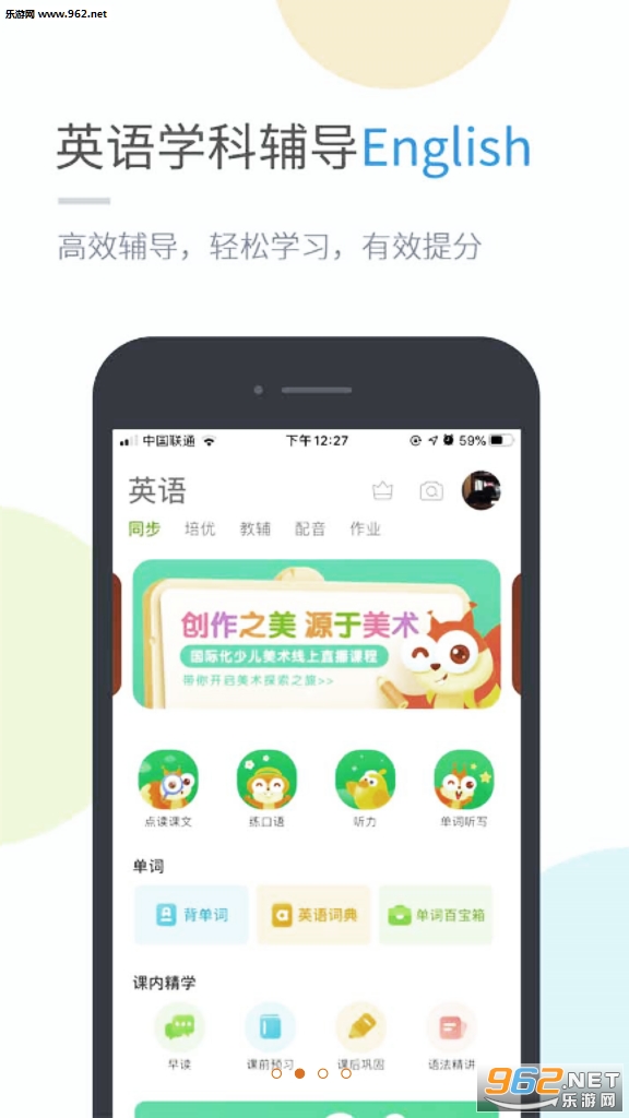 课本点读、练口语、作业辅导、绘本课程、考试测评、早读课程、课前预习、课后巩固、阅读训练、语法训练、听力训练、每日英语、老师作业、丢分题、精选收藏、听力、欧美课程、学习工具等