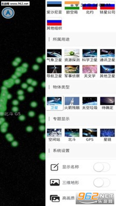 数秀地图是一款实时采集和显示全球卫星、航天器、火箭残骸和太空垃圾的移动应用软件。
