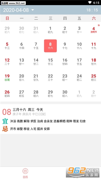 适合中国人的万年历,集日历、农历、禁忌、择吉于一身的生活助手。