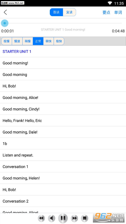 复读功能,每一篇课文都可以进行复读,便于更好的学习发音;