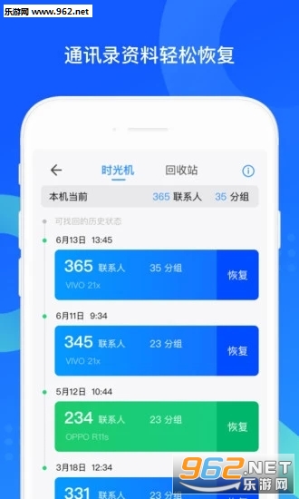 误删找回:通过回收站或时光机,随时找回误删的联系人