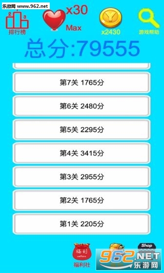 2、累积分数达到目标,你就能顺利通关,进行下一关的娱乐时刻。