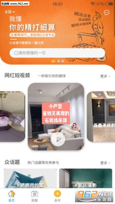 网红直播,云装修模式开启,通过直播、短视频找到心仪的家居风格、装修设计,并且在众居邦APP上有上千真实用户在分享装修风格、设计灵感、装修费用、居家好物,以及如何避坑的干货装修经验,你可以通过用户真实的整屋案例找到自己想要的家的模样。