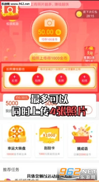 拍照秀赚钱是一款拍照赚钱的手机软件。这款拍照赚钱的软件不仅只有拍照赚钱的方式,还有刮卡、猜成语等不同的方式类型,拍照秀赚钱这款软件玩法还挺多,拍照上传可以赚金币,还有刮刮卡,猜成语等玩法可以赚取金币。新人可以提现一元,无门槛提现是30元起。大家可以去试试哈。