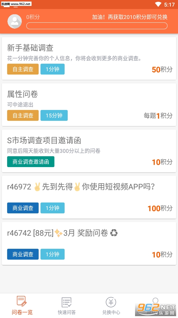 攒粒问卷网,原91问问,一家资历很老的全球性专业调研机构,通过简单参与调查问卷,就能获得积分奖励,100积分兑换1元。有些人做网赚觉得难,调查赚钱应该是最简单的,只需打勾就行了,一份问卷1-10元,单价高,在国内仅次于收奖网,小编只推荐这两个不错的调查平台。