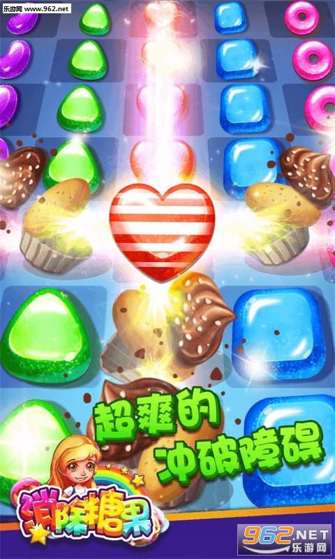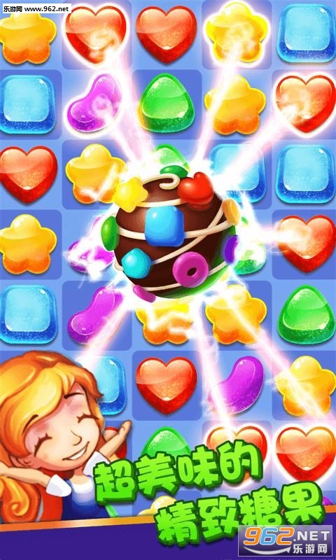 3、各种各样色彩斑斓的糖果,想尽一切办法将相同形状的糖果连成一条线。