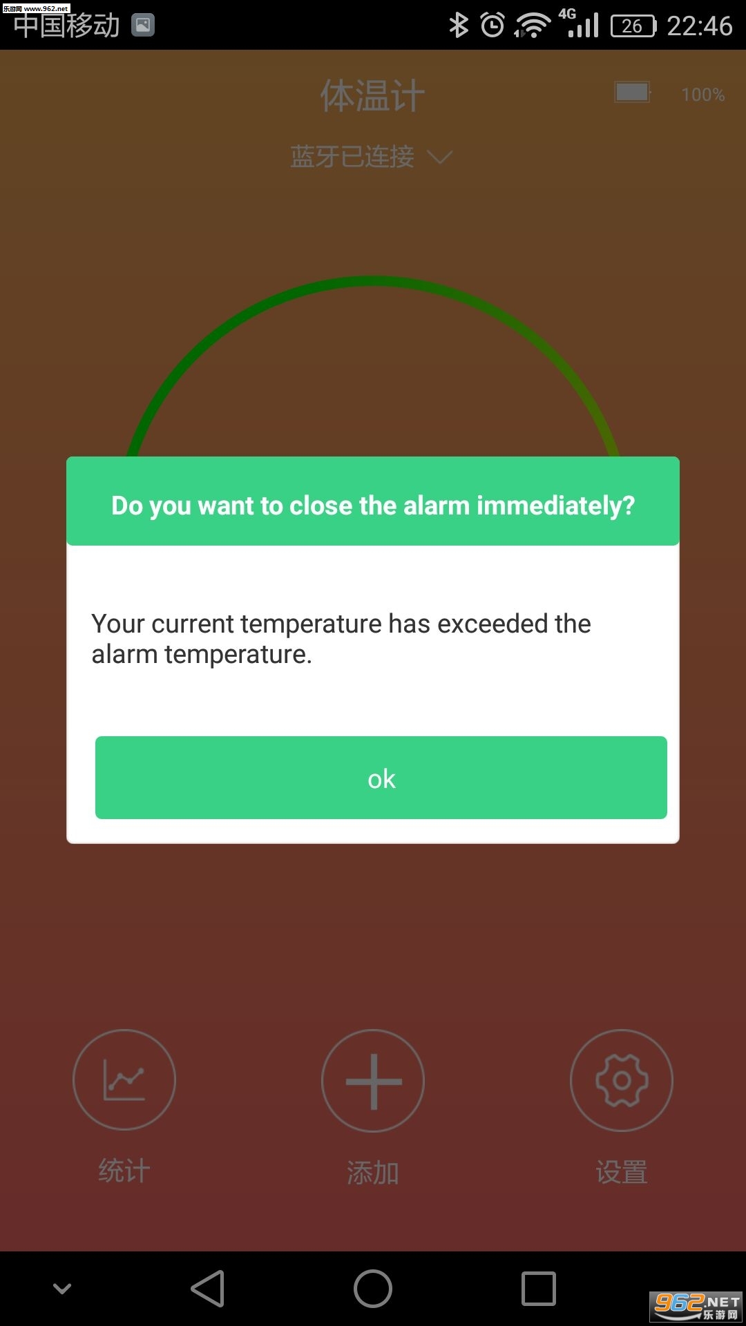 您可以设置您的报警温度,当超出您设置的报警温度是APP会一直提醒您(手机会一直响,直到您关闭报警为止)现在是在发泄,方便您及时采取退烧措施