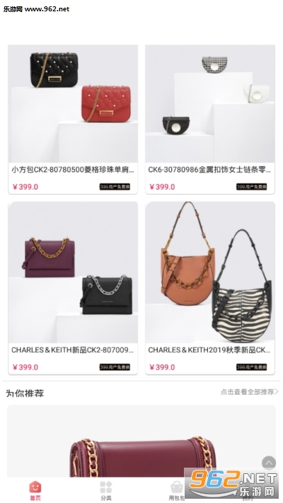 首页快速搜索,包包分类;性能优化修复了一些已知的问题。专注于各种包的展示,爱包达人可以根据自己的需要选择自己心爱的包包。首页有每日爆款包包,可快速查看当前爆款。分类有斜挎包、单肩包、双肩包、手提包等各种分类。其他更多功能请下载包你美APP尽情体验吧!