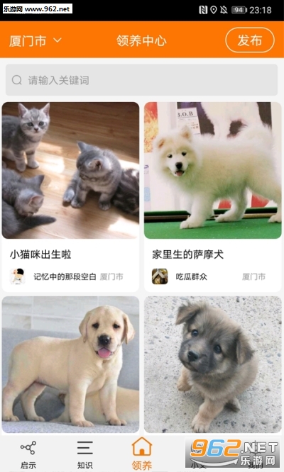 《宠物公益app》是一款收养流浪猫流浪狗的宠物平台,帮助大家进行猫狗的领养,同时还提供宠物健康知识、话题、问答,让用户能够了解各种喂养知识。