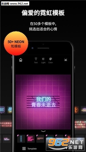 拥有50余种霓虹模板,霓虹滤镜和文字