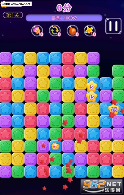 2、十分考验你的灵活头脑,将所有相同的星星都能消除,在最短时间内完成任务;