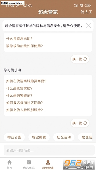 云居管家APP,全新的物业生态管理方式,集智能物业功能于一体。呼叫中心,时时守护小区;一站式报修管理系统,快速反馈;智能车场服务,实时掌控车场情况。