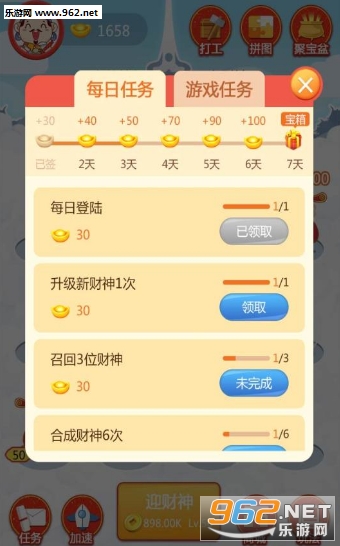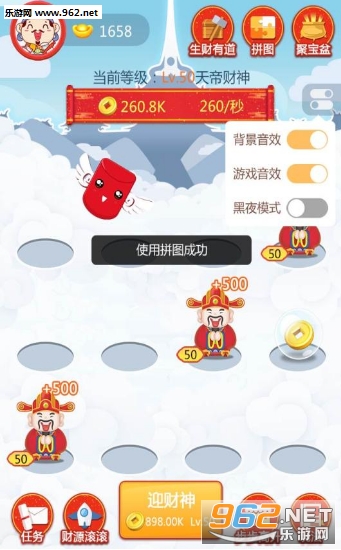 2、利用拼图功能帮助自己强化财神等级,努力提高才能赢得更多钱财;