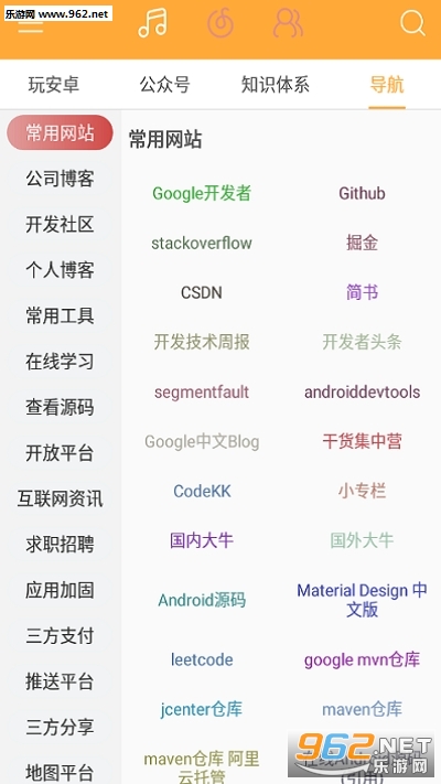 包括一些出名博客,开发社区,开发平台等等的快速入口。