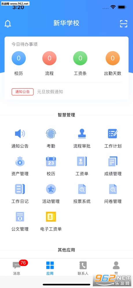 洪校通软件集学校通知、校历、公文管理、流程审批、考勤等多个应用与一体,