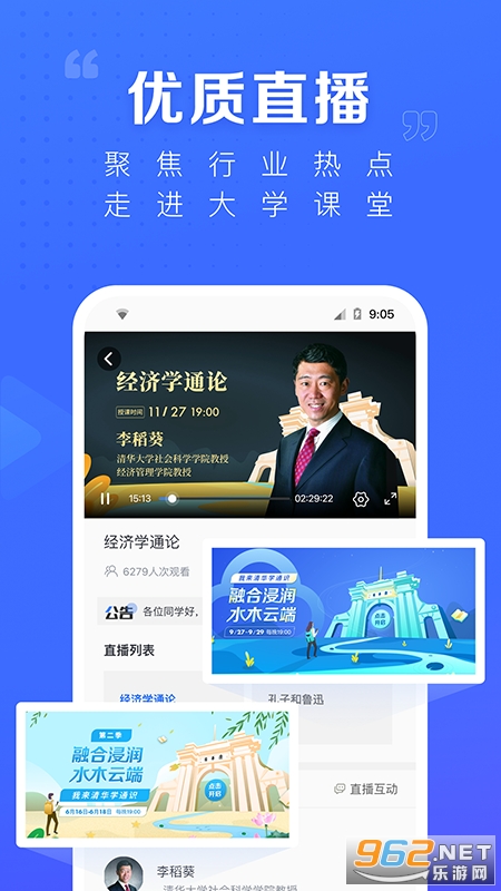 《学堂在线app》是一款针对中小学生的线上教学软件,在平台上用户可以享受到高质量的教学,平台上汇聚了全国各大高校的名师在这里进行直播讲课,用户每天都可以在固定时间进行观看,并且直播的视频当天都会上传,用户可以自由的进行观看,同时还有海量的习题库可供用户练习,让用户无论在哪里都能感受到课堂的感觉。