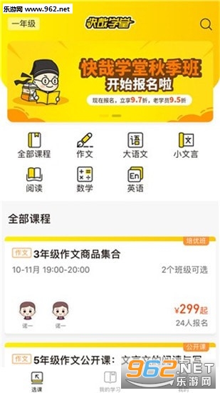 多个科目可选择,包含作文、语文、阅读、数学、英语等;