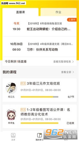 报班学习后,预约上课,通过手机客户端学习直播课程;
