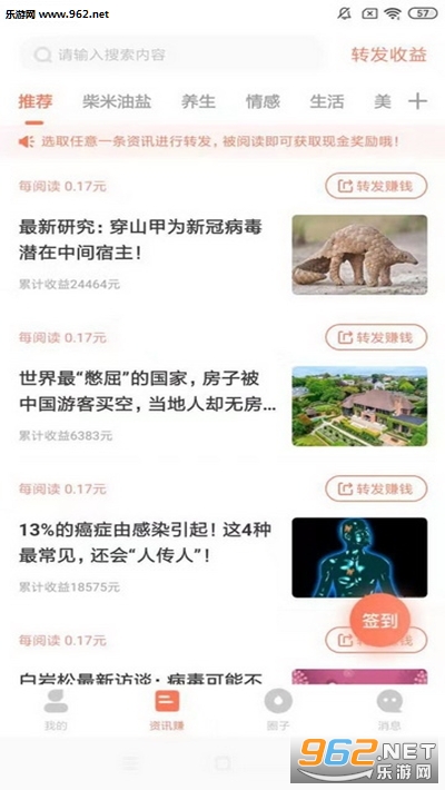 在这看资讯看新闻看短视频就可以赚到钱了,转发文章或者是点赞也可以赚钱哦;