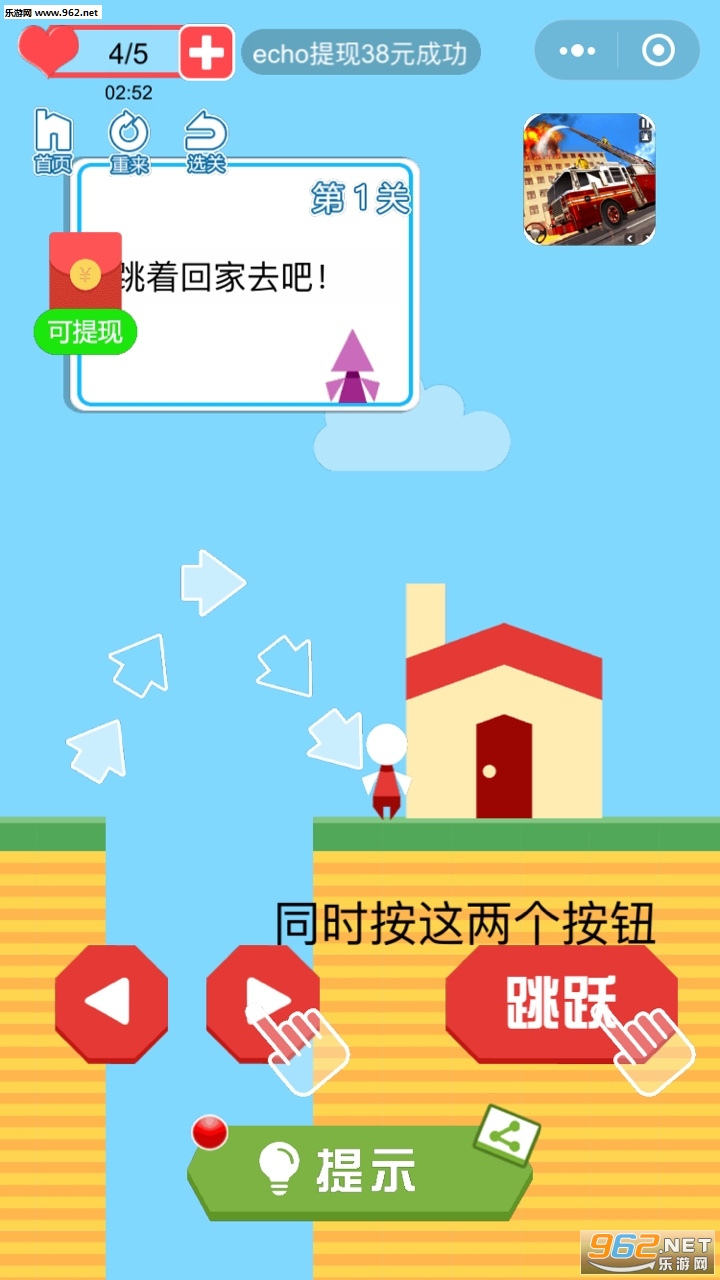 经典小人回家红包版是一款非常考验玩家敏捷操作能力的冒险闯关类游戏,可爱的小人迷路了,而你需要做的就是帮他找到回家的路,克服各种各样的困难,躲避障碍物,发挥你的聪明才智,开动你的小脑筋,完成这项艰巨而具有挑战性的任务,经典的小人形象,独特的跑酷闯关玩法,融入众多全新的元素,成功闯关还能获得丰厚的红包奖励,达到38元就能直接转到零钱,对于玩家来说,简直就是超级大的福利。