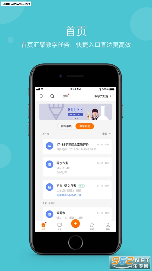 1、软件的首页汇聚了海量的教学有关的任务,并加入了快捷的入口大大提升你的各种效率;